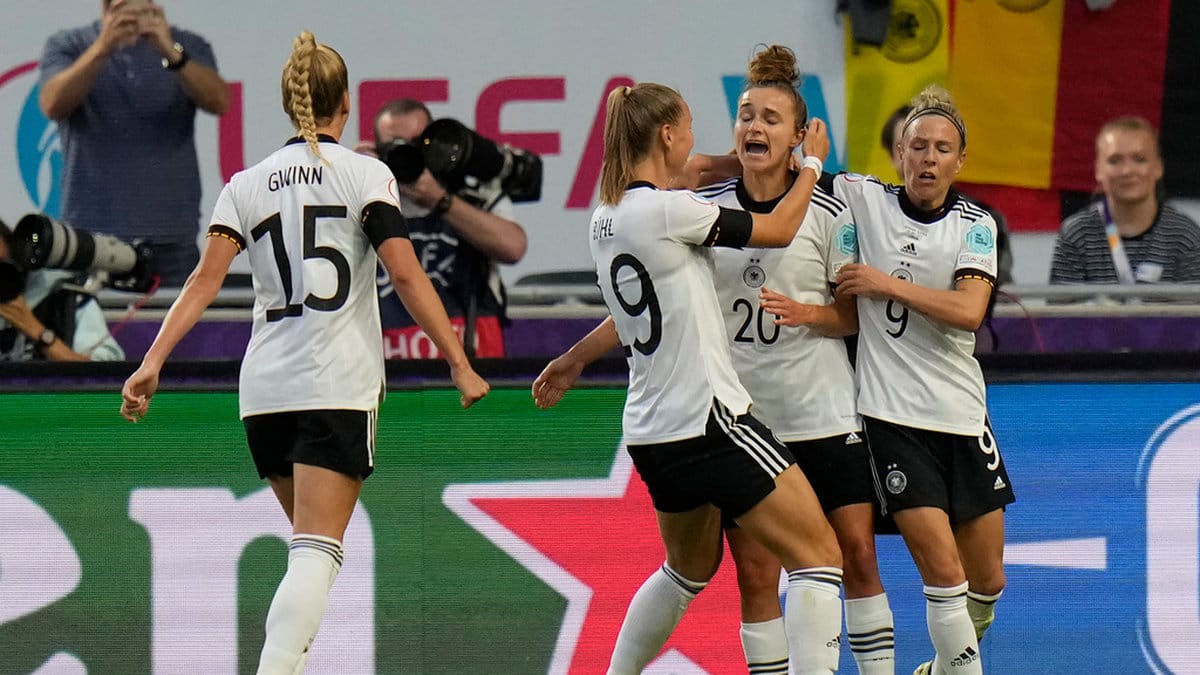 Det dröjde 25 minuter innan det tyska anfallet hittat förbi de rödklädda försvararna. Klara Buhl kunde från bortre delen av målgården slå en välavvägd passning mot två lagkamrater i mitten av straffområdet. Alexandra Popp valde att kliva över bollen för att ge Lina Magull chansen.