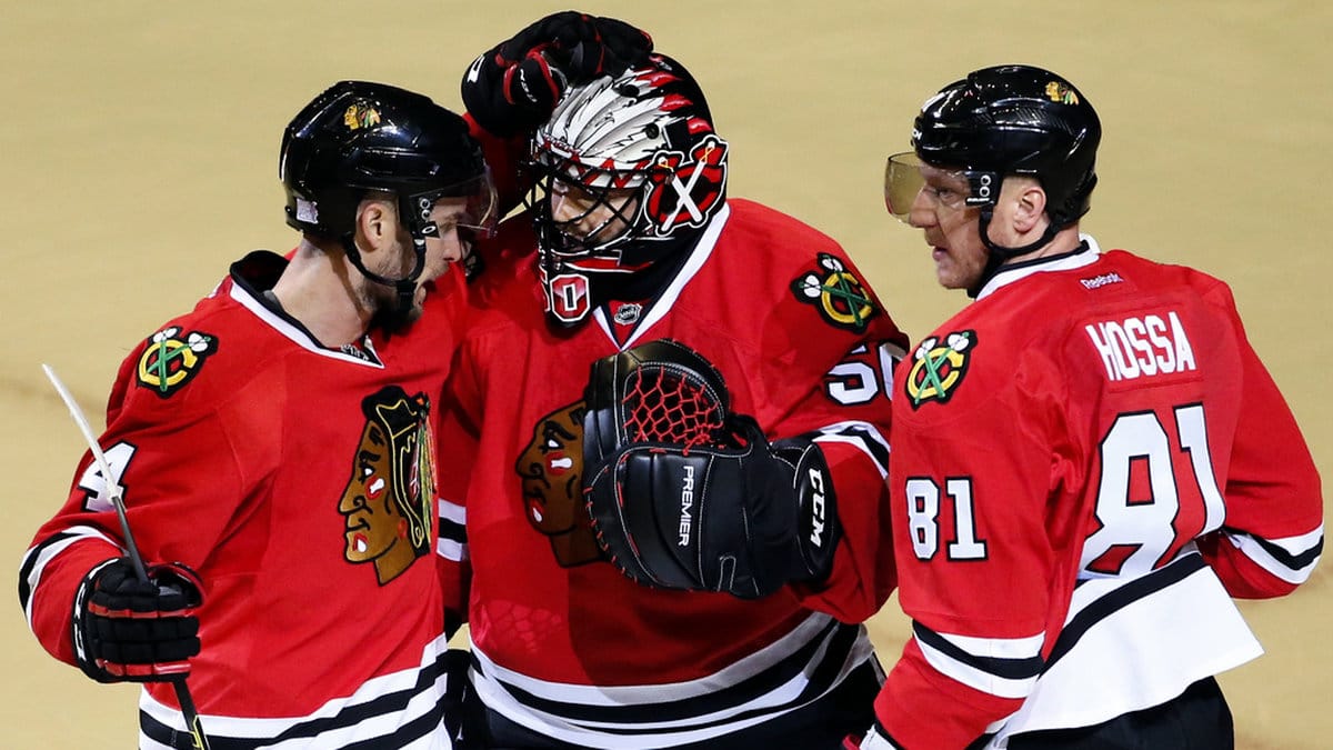 Hjalmarsson och Hossa var lagkamrater i många år i NHL-laget Chicago. Svensken var med och vann tre Stanley Cup med Chicago och var erkänd som en av NHL:s bästa defensiva backar.