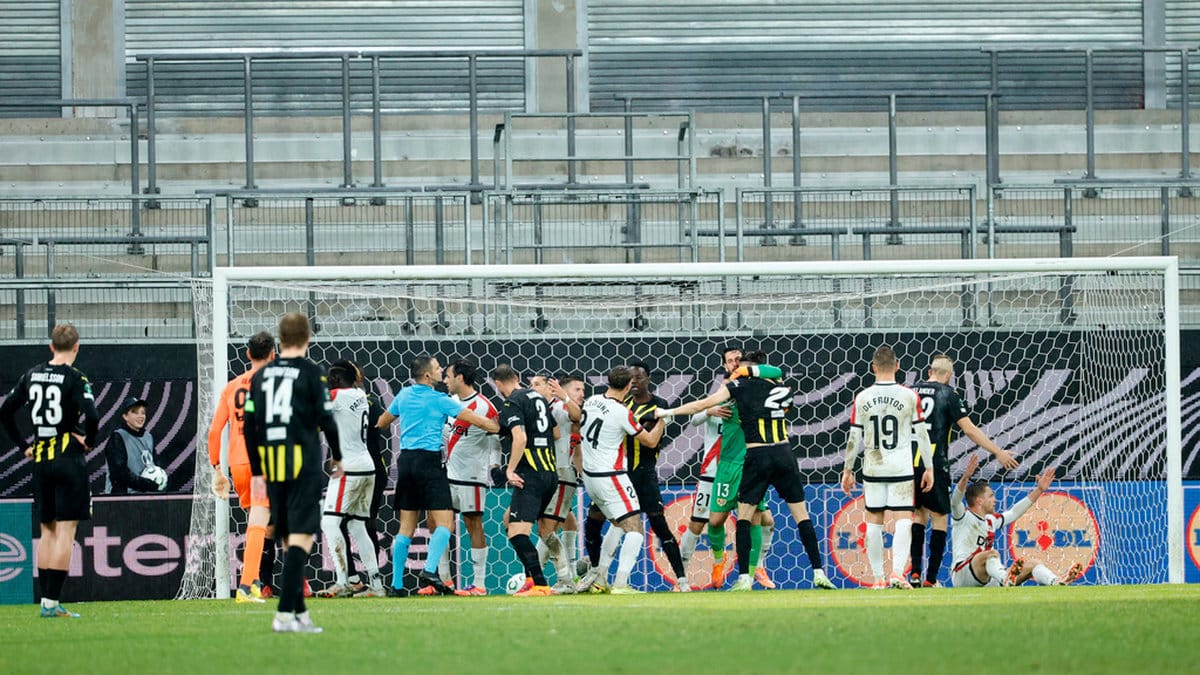 Men det var inte över. Rayo Vallecano låg på och i den 102:e minuten fick bortalaget straff efter en VAR-granskning. I samband med beslutet bröt ett stort bråk ut.