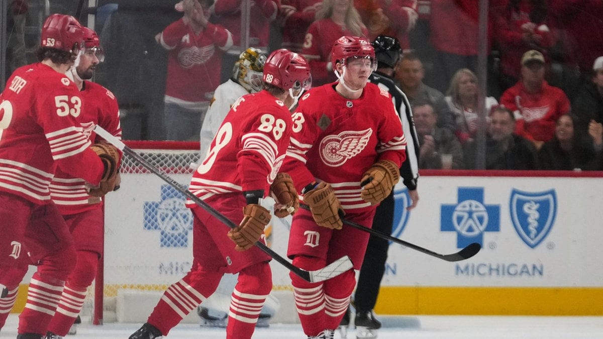Hampus Lindholm gjorde sitt bästa för att ge Boston en chans att komma ikapp, svensken spelade fram till tre av lagets slutligen fyra mål. Men det var Raymond och Detroit som fick med sig full pott efter 5–4.