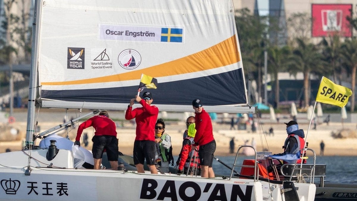 Engström, Rasmus Alnebeck, Emil Wolfgang och Filip Karlsson från Göteborgs Kungliga Segelsällskap föll mot britterna i finalen i matchracingen i vattnen utanför Shenzhen.