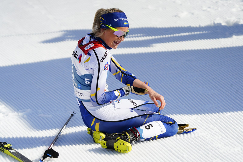 – Ebba (Andersson, reds. anm.) faller och jag har ingenstans att ta vägen, så jag faller också. Sen kom Heidi Weng som en kanonkula och körde över min arm.