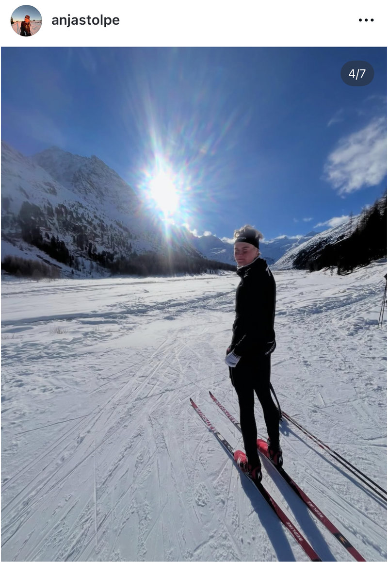 På Anja Stolpes Instagram hittar vi en bild på Myhlback ute i spåren.