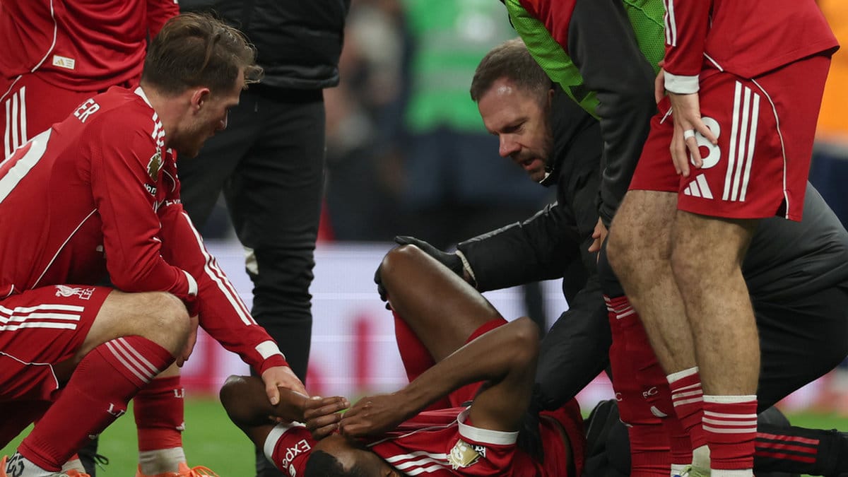 Han gömde ansiktet i tröjan medan han fick behandling av Liverpools medicinska team. Isak reste sig och kunde stödja på båda benen, men han haltade när han lämnade planen med hjälp av personal från Liverpool.
