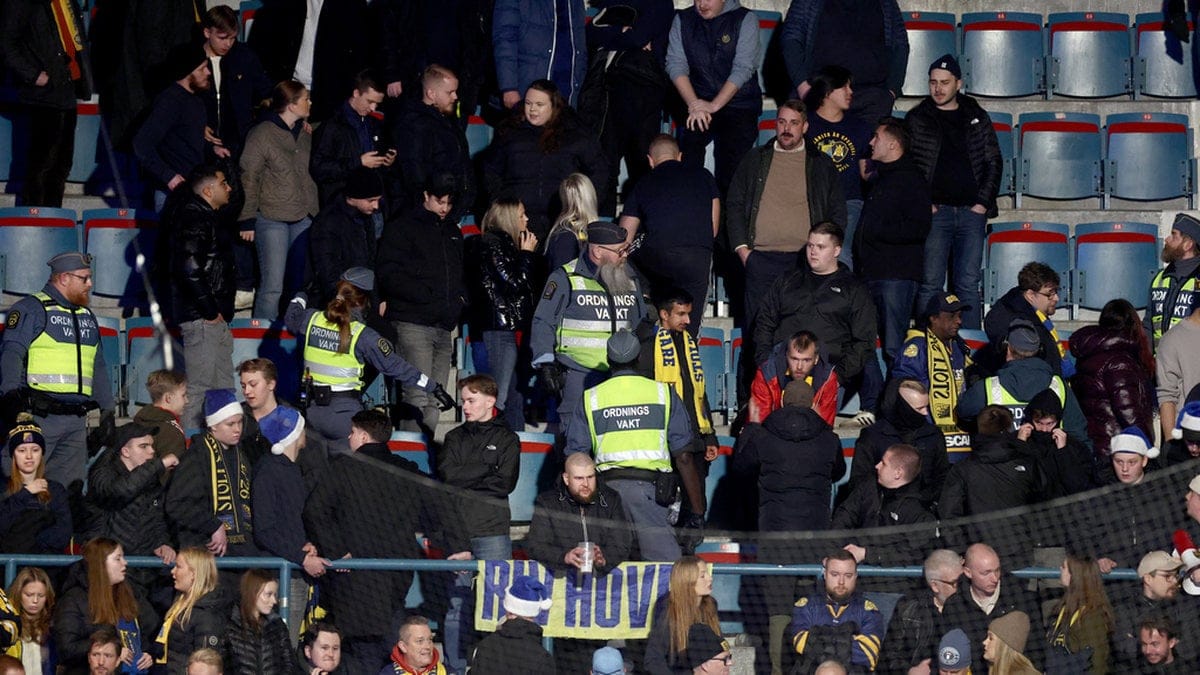 Enligt TV4 Plays sändning tändes pyroteknik på Södertäljes klacksektion inför matchen. Enligt kanalen ska gästernas sektion tömmas och omvisitering göras innan matchen kan starta.