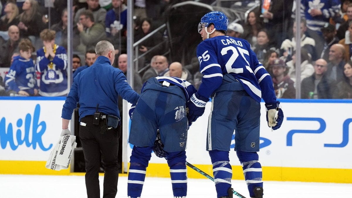 Torontokaptenen Matthews, som nyligen tog OS-guld i ishockey för USA, drog på sig en knäskada efter en uppmärksammad tackling i NHL-matchen mot Anaheim natten till fredagen.